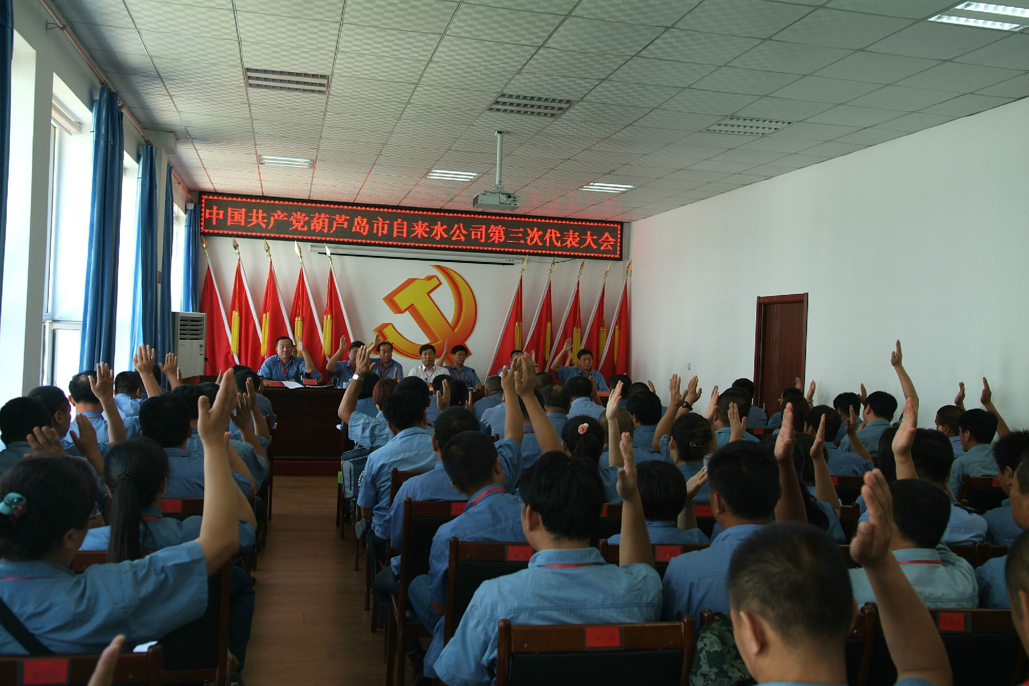 上午9時,大會在雄壯的國歌聲中拉開帷幕。公司黨委書記張旭濱代表上屆黨委做了題為《凝心聚力真抓實干 為實現(xiàn)供水事業(yè)新的發(fā)展而奮斗》的工作報告,全面回顧了公司近年來黨委開展的各項工作及取得的成績,提出工作不足,并對下屆黨委寄予厚望。全體代表在認真聽取第二屆黨委工作報告以后,以舉手表決方式,一致同意通過黨委工作報告。