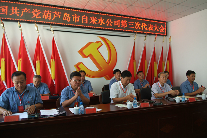 公司經理李文生宣讀《中國共產黨葫蘆島市自來水公司第三次代表大會選舉辦法》,經全體代表表決通過后,大會以無記名投票方式,差額選舉產生了9名公司第三屆黨委委員。在隨后召開的第三屆委員會第一次全體會議上,選舉張旭濱為公司黨委書記,李文生為副書記,并明確委員分工。張旭濱同志代表新當選的公司第三屆黨委講話,指明今后的工作思路和前進方向。接著,徐學良常務副經理宣讀大會決議。