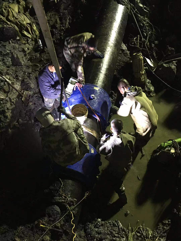 由于管道破裂處位于直徑約10米的淤泥水坑中,地勢環(huán)境非常惡劣,給搶修工作帶來了極大的難度。維修人員首先對施工地點進行圍堰、降水。為防止污水倒灌進入管線,工作人員一邊用四臺大功率水泵同時抽出圍堰內(nèi)的水,一邊控制管線泄水壓力。由于管線大,水量多,經(jīng)過4個小時的連續(xù)降水作業(yè),管線斷裂點才逐漸顯露出來,工作人員立即對破裂部位進行更換。夜晚涼意不斷,坑內(nèi)泥濘不堪,維修人員忍著腥臭的淤泥,不顧蚊蟲叮咬,埋頭苦干,與時間賽跑,他們不怕臟不怕累,全力以赴按下?lián)屝薜摹翱爝M鍵”,跑出了“加速度”,經(jīng)過全體維修人員的連夜奮戰(zhàn),于當晚23時搶修結(jié)束,23:30恢復供水,當晚經(jīng)對西山坡6號泵房取水樣化驗水質(zhì)完全達標。