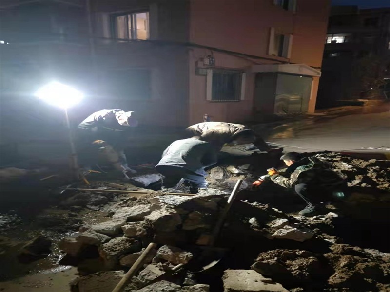 11月17日,宏業(yè)小街區(qū)域出現(xiàn)漏點(diǎn)。營(yíng)業(yè)三分公司維修人員趕到現(xiàn)場(chǎng)后發(fā)現(xiàn),該區(qū)域地處坡路,屬于商混路面,地面厚,而且還在供暖管下方,測(cè)漏人員很難定準(zhǔn)漏點(diǎn),要把整個(gè)路面破開(kāi)才能找到漏點(diǎn)。由于開(kāi)裂處地理位置特殊,打電鎬難度大,給施工造成困難。搶修人員相互配合,輪換跳入滿是積水的泥坑進(jìn)行搶修作業(yè)。刺骨的冰水浸透了衣服,泥水沒(méi)過(guò)膝蓋,他們顧不上嚴(yán)寒的侵襲,一刻也不放松搶修的進(jìn)度。大家堅(jiān)守在搶修第一線。餓了,啃幾口干糧;困了,就輪流打個(gè)盹,爬起來(lái)繼續(xù)干??恐@種工作態(tài)度,大家從下午3點(diǎn)開(kāi)始,經(jīng)過(guò)9個(gè)多小時(shí)持續(xù)不間斷奮戰(zhàn),漏點(diǎn)修復(fù),到晚上近11點(diǎn)才維修完畢,恢復(fù)供水!