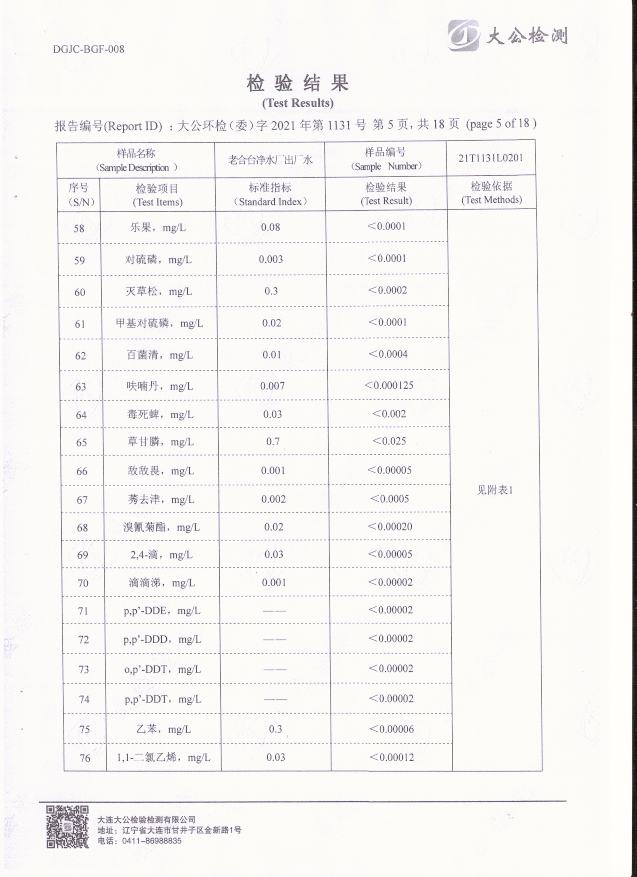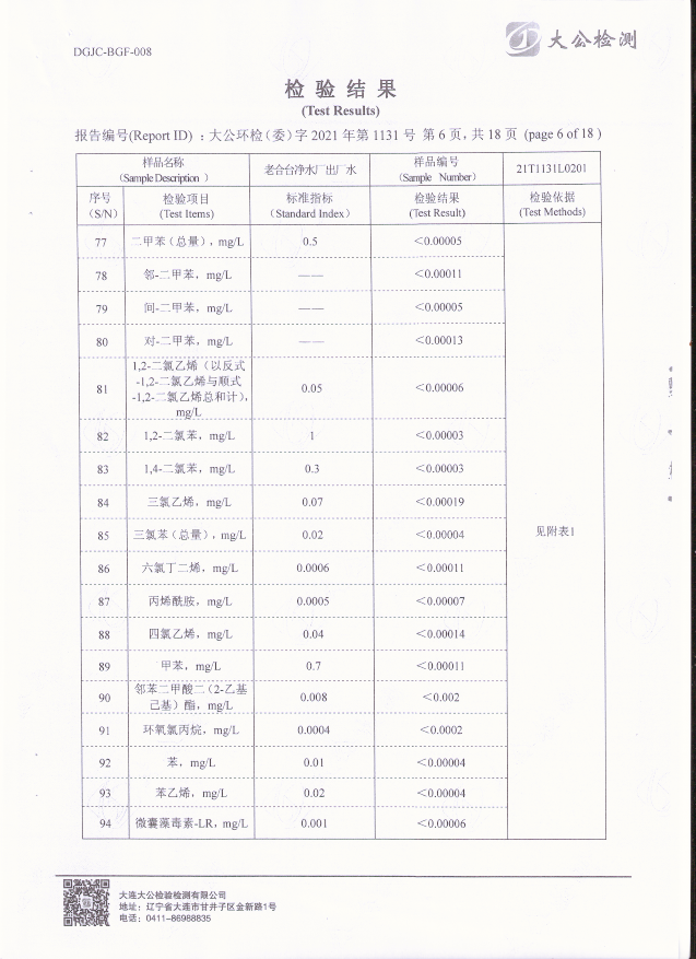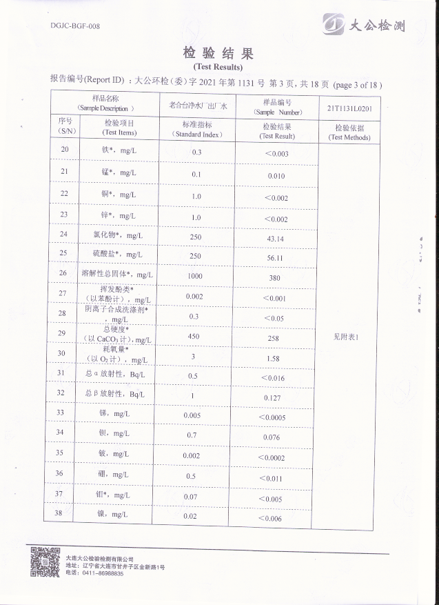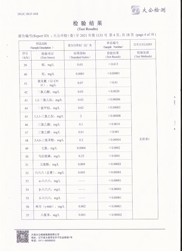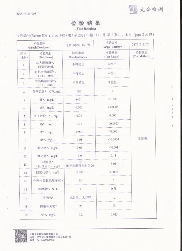 老合臺(tái)凈水廠出廠水質(zhì)檢驗(yàn)報(bào)告