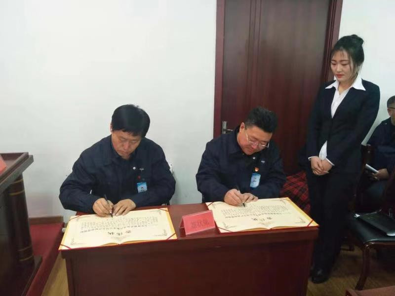 會上,公司經(jīng)理李文生與各分管經(jīng)理及部門負責人分別簽訂2019年度經(jīng)營指標責任狀。