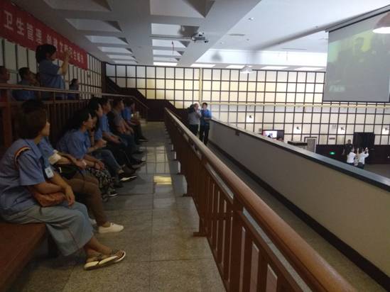 活動的第一站是沈陽審判日本戰(zhàn)犯特別軍事法庭舊址。據(jù)講解員介紹,它是新中國在1956年審判日本戰(zhàn)犯的法庭遺址。陳列展覽包括文字、照片、史料,文物、多媒體演示等展覽形式。展覽共分為“審判背景” “審判準(zhǔn)備”“莊嚴(yán)審判”“尾聲”等四個(gè)部分,全面展示了日本戰(zhàn)犯在沈陽接受審判的整個(gè)過程,重現(xiàn)了1956年中國政府成立特別軍事法庭,對日陸軍中將師團(tuán)長鈴木啟久、偽滿洲國國務(wù)院總務(wù)長官武部六藏等36名戰(zhàn)犯進(jìn)行審判的歷史場景。黨員們在現(xiàn)場莊嚴(yán)地舉起右拳,面對黨旗宣誓,重溫入黨誓詞,一起回顧入黨初心。宣誓結(jié)束后,隨同講解員參觀了各個(gè)展廳及復(fù)原的公審日本戰(zhàn)犯場景蠟像,觀看了公審日本戰(zhàn)犯的影像紀(jì)錄片,這場令中國人民揚(yáng)眉吐氣的審判,讓大家深刻感受到了中國對待日本戰(zhàn)犯的寬大胸懷,對祖國的敬佩之心油然而生。