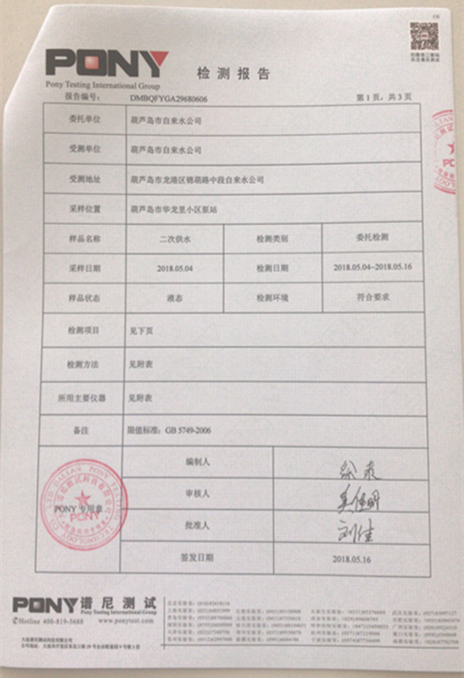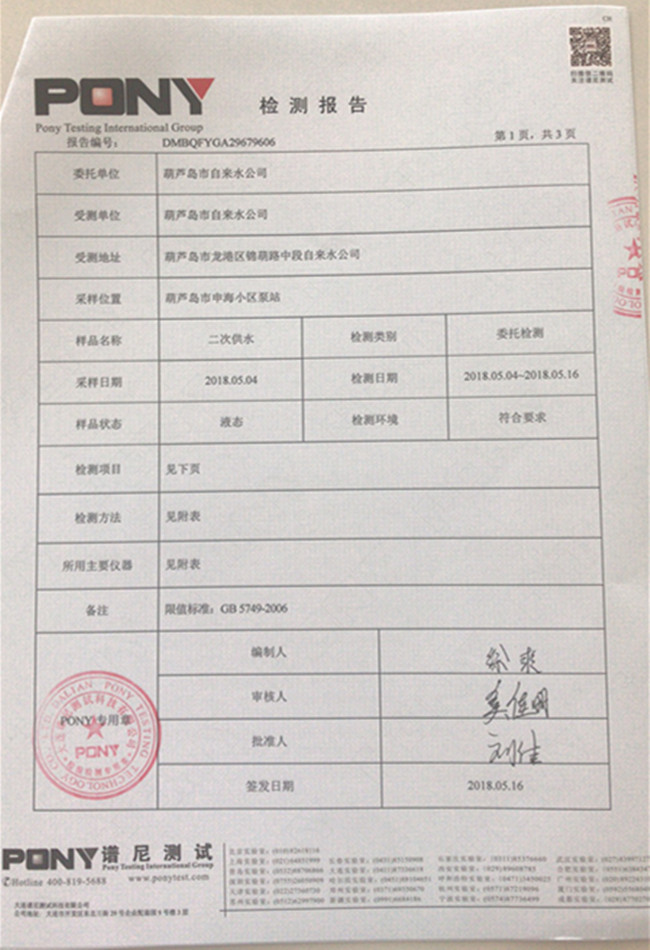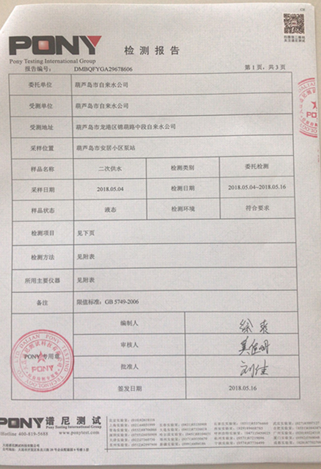 華龍里小區(qū)泵站檢測報(bào)告: