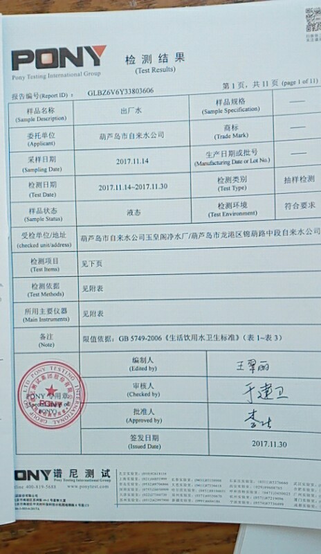 水質(zhì)報告