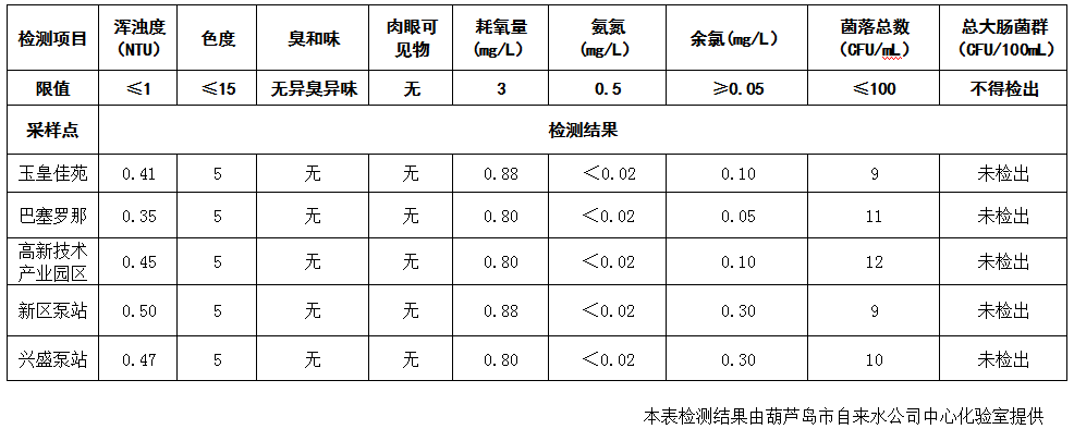 2017年7月26日葫蘆島市城市供水管網(wǎng)水質信息