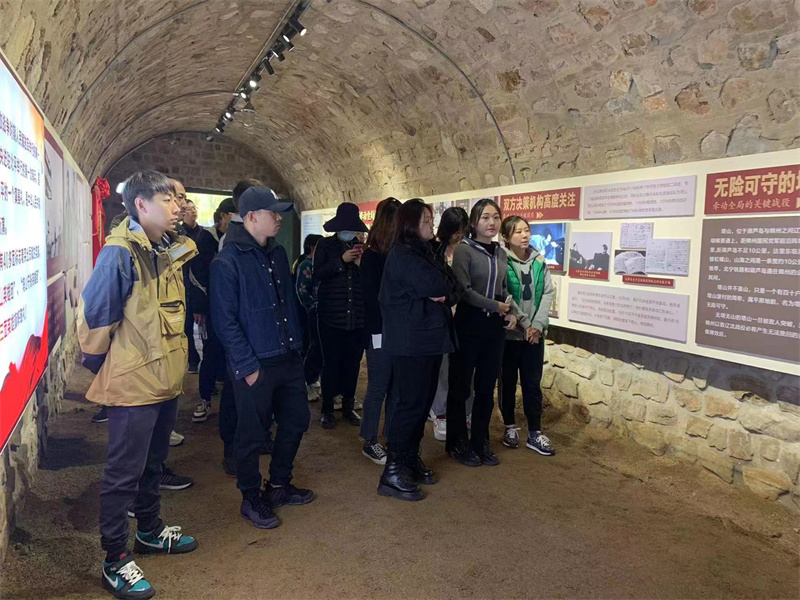 活動(dòng)當(dāng)天,30名團(tuán)員青年在葫蘆古鎮(zhèn)開展為期一天的拓展訓(xùn)練活動(dòng)。整個(gè)活動(dòng)分兩部分進(jìn)行,首先全體人員參觀了塔山精神宣教館,在講解員的帶領(lǐng)下,在“防空洞”內(nèi)通過圖文介紹、實(shí)物展示,回望了先烈們?yōu)橹腥A民族的獨(dú)立和解放英勇不屈、浴血奮戰(zhàn)的動(dòng)人事跡,切實(shí)體會(huì)到了革命先烈不屈不撓、勇于斗爭(zhēng)的革命精神以及不畏犧牲、前仆后繼的堅(jiān)定革命信仰,對(duì)誕生在葫蘆島大地上的“顧全大局、嚴(yán)守紀(jì)律、勇于犧牲、敢打必勝”的塔山精神有了更加深刻的認(rèn)識(shí)。