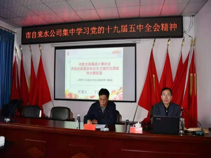 在全市興起學(xué)習(xí)貫徹黨的十九屆五中全會精神熱潮之際,11月26日下午,市自來水公司組織全體黨員集中深入學(xué)習(xí)黨的十九屆五中全會精神,邀請市委講師團(tuán)副團(tuán)長丁澤輝主講,確保黨中央決策部署得到不折不扣的貫徹落實。黨委書記張旭濱主持學(xué)習(xí)會議。