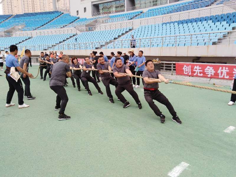 市自來水公司工會層層選拔、精心挑選,組成了一支由工會副主席臧威帶隊的15人參賽團隊。隊員們統(tǒng)一著裝,精神振奮,熱情高漲,比賽過程中,無論是場上還是場下,氣氛都異常激烈。參賽隊員們手握緊繩子,身體向后傾,隨著裁判員的一聲哨響,隊員們努力拼搏,尤其是在勝負難分的時刻,大家毫不退卻,咬緊牙關(guān),堅持到底。賽場上的選手們堅強勇敢的作為、團結(jié)協(xié)作的精神深深的感染了在場的每個人,連中場休息的隊伍也在為賽中的選手們加油助威,富有節(jié)奏的吶喊聲、加油聲,充斥在比賽場地上空。經(jīng)過循環(huán)賽、淘汰賽的激烈角逐,公司工會代表隊在小組比賽中取得了第一名的優(yōu)異成績。