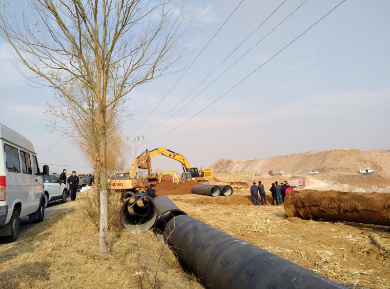 當天下午4時,市自來水工程總公司抽調(diào)的35名搶修精干力量投入搶修作業(yè),同時出動大型挖掘機3臺,搶修設(shè)備包括大小發(fā)電機組7臺,水泵3臺,電焊機6臺。搶修難度遠比預想的要困難得多。地下管線十分復雜,破損點位排查困難,實施停水作業(yè)后,最終確定破損位置,因次生土壤塌方將200余延長米管線壓斷,并且破口較大,經(jīng)現(xiàn)場有關(guān)技術(shù)人員一致研究決定采取徹底換管的方案。由于受損管線長達200余米,并且管徑大,原材料庫存少,公司材料處當場聯(lián)系,緊急調(diào)動新管線。搶修過程中,需要穿越鋅廠位于地下2.2米深的DN800供水管線,使新的輸水管線需要深挖至6米深的地下實施安裝。并且安裝的管邊離1萬伏的電纜不到1米遠,十分危險,為保障安全,施工中先用吊車、挖掘機扶住電線桿子后再作業(yè)。初冬的11月份,深夜氣溫驟降。搶修人員冒著零下十幾度的嚴寒,輪流吃飯,舍不得片刻休息,搶時間、爭速度。