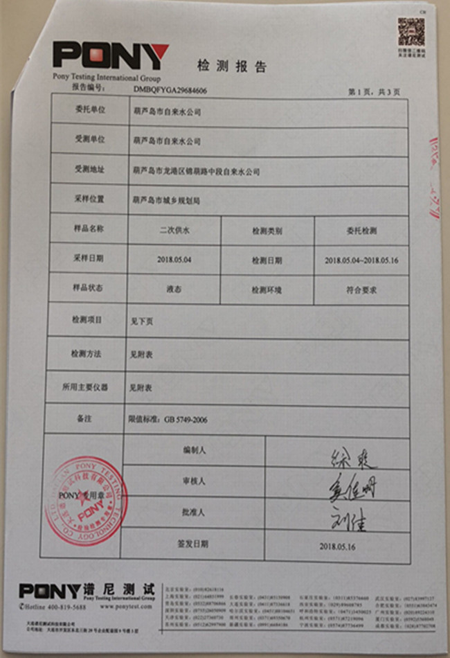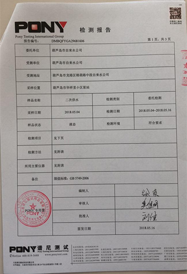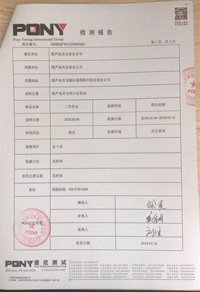 華龍里小區(qū)泵站檢測報(bào)告: