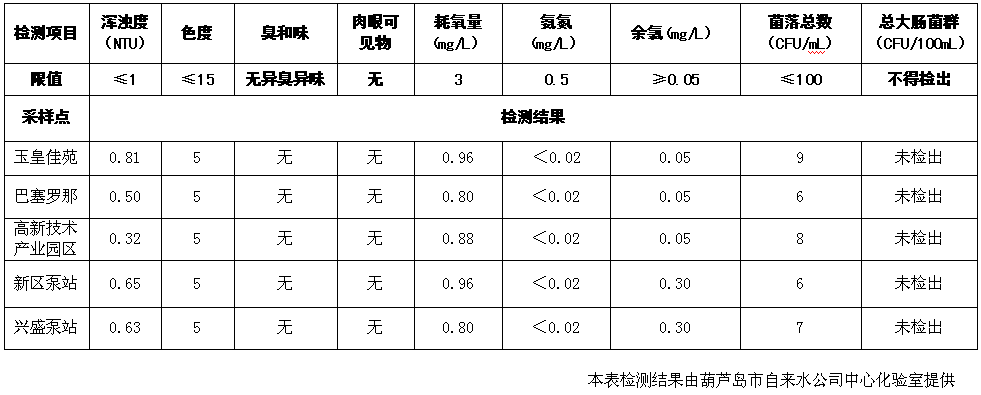 2017年2月8日葫蘆島市城市供水管網(wǎng)水質(zhì)信息