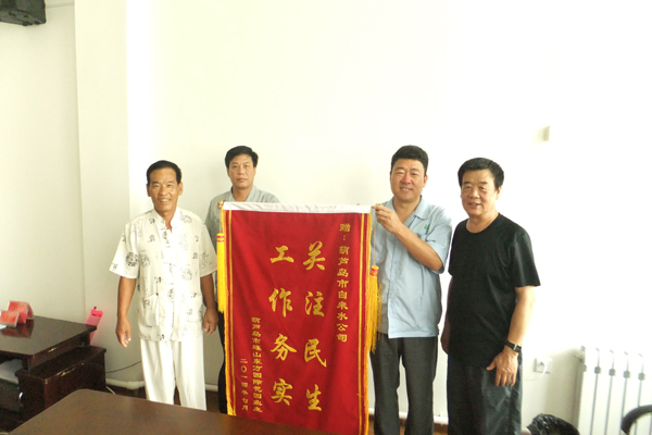 7月28日上午,東方國(guó)際花園部分住戶代表專程來(lái)到自來(lái)水公司,將一面繡有“關(guān)注民生,工作務(wù)實(shí)”的錦旗送到公司經(jīng)理李文生手中,感謝自來(lái)水公司為他們解決了用水難題。